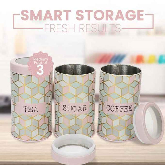`Moroccan Pink Pastel 850ml Airtight Lid Jars Set of 3 M Size - Jarsome